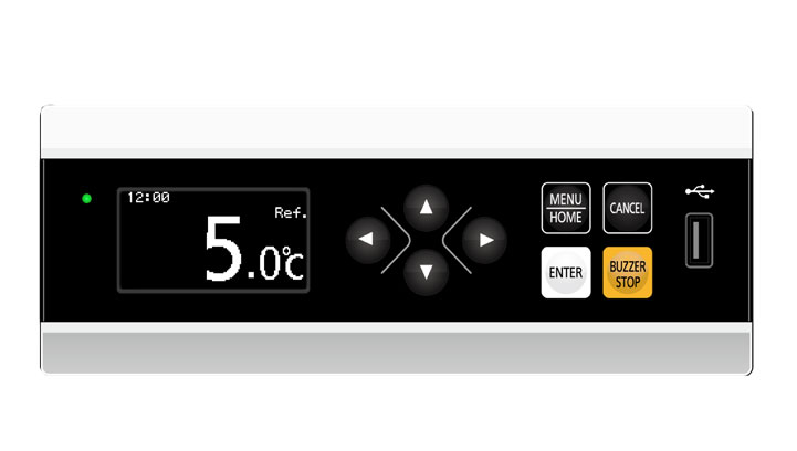Microprocessor Controls, OLED Display: The microprocessor controller and softkey interface are door mounted at eye level. An OLED alphanumeric display provides convenient, secure user management. Temperature readings can be displayed in single digits or 0.1 increments. Minimum/maximum temperatures can be easily viewed. All alarm conditions are displayed and recorded. Data transfer is available through a USB port.